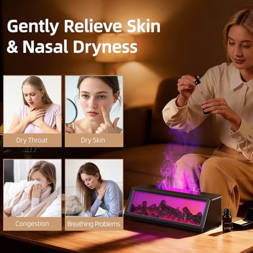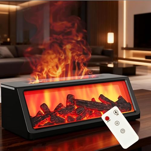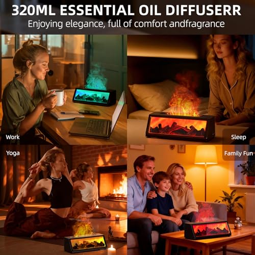 Fireplace Essential Oil Diffuser, Aromatherapy Diffuser, 320ml Ultrasonic Cool Mist Humidifier, 7 Colors Firelight Flame Diffusers with Remote, Waterless Auto-Off & Timer for Home Office