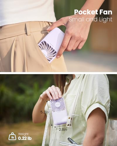Pocket-sized and lightweight. Size: 13.2 x 7.1 x 2.0 cm. Weight: 90 g. Equipped with a long strap, the personal fan is light enough to wear around your neck. This can be a slim essential that fits in a purse, bag or crossbody bag, making it perfect for shuttle essentials, concerts, music festivals, clubs, campaigns and out of doors activities.