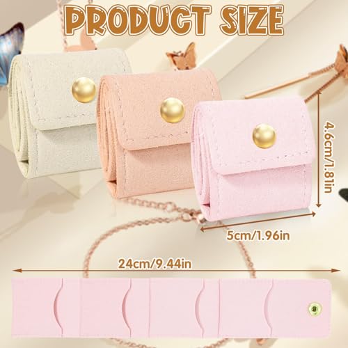 HINGTAI 3Pcs Mini Travel Jewelry Bag, Leather Foldable Jewelry Organizer Pouch for Necklaces, Rings & Earrings – Compact Travel Accessories Jewelry Case with Buckle for Women (Beige, Pink, Dark Pink)